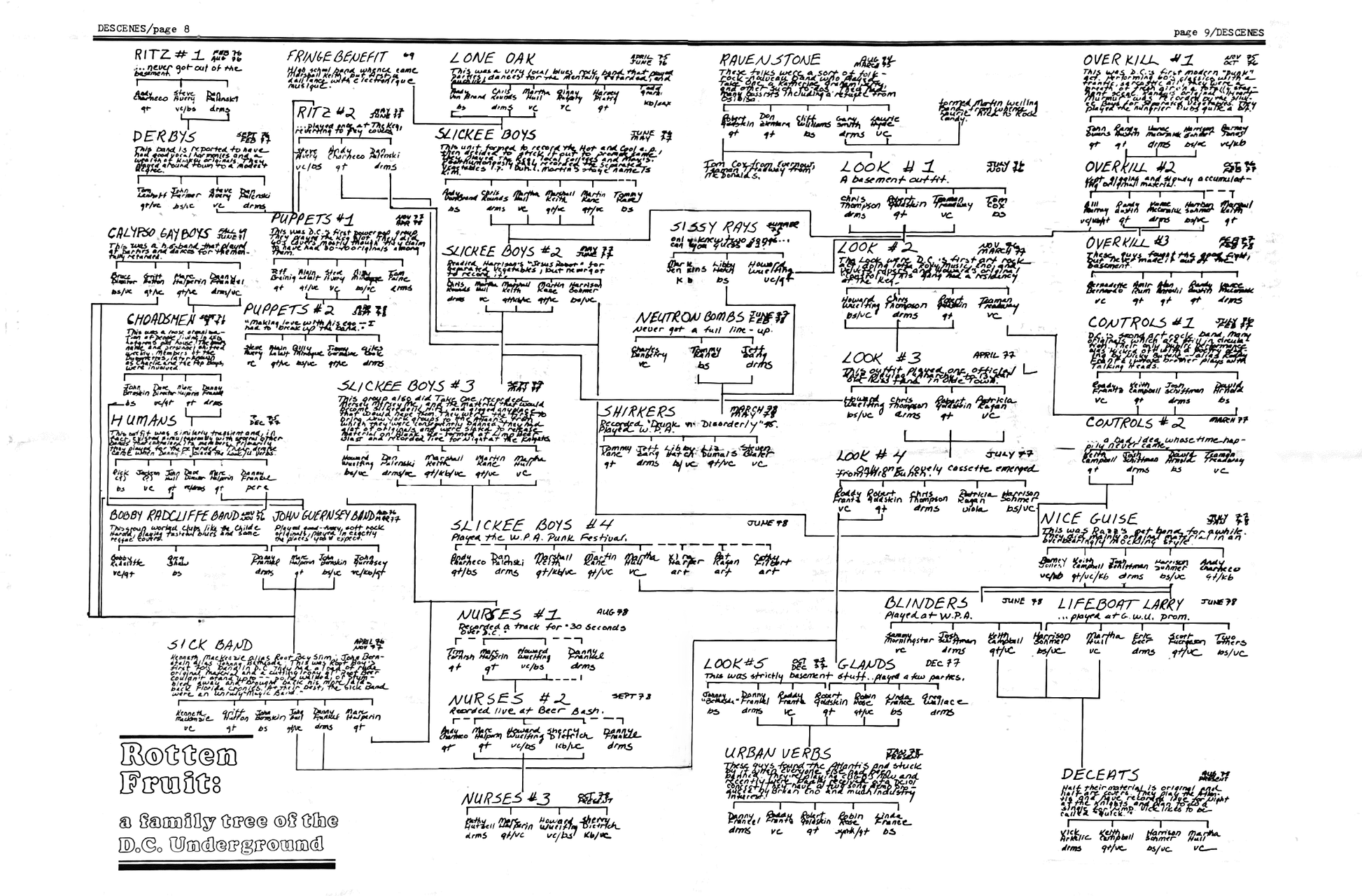 Descenes and Discords: An Anthology presents full facsimiles of every issue of both zines, preserving the original cut-and-paste layouts, typewritten rants, and Xeroxed charm that defined a generation of independent media. The anthology is enriched with new commentary by Wuelfing, reflecting on the zines’ creation and impact. It also includes a transcribed conversation between Wuelfing and Ian MacKaye — the iconic frontman of Minor Threat and Fugazi — where they discuss the fanzine era’s role in shaping punk’s identity and legacy. A Foreword by esteemed D.C. cultural critic Mark Jenkins sets the historical stage for readers. The book also contains a poster of the DC Band Family Tree, featured in issue #1.